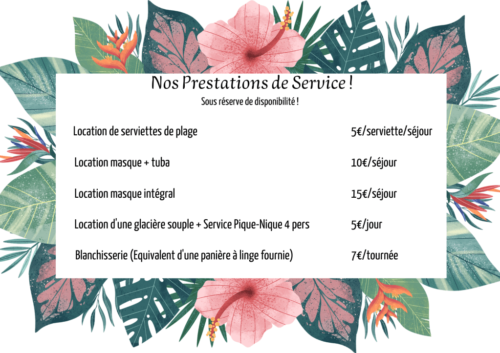 Votre gîte sera entièrement préparé pour que vous puissiez profiter de votre séjour aussitôt ! Le prix de la location comprend la fourniture du linge de maison (draps, couvertures, taies et torchon) et du linge de toilette (2 serviettes par personne).